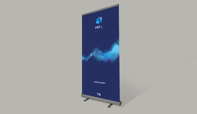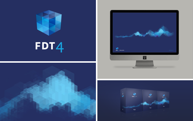 Finally the new FDT logo was designed. The blip/figurative mark is a cube with perspective projection designed by smaller cubes. Even here the topic ‘growing up’, further development is given but at this time combined in a concrete form.