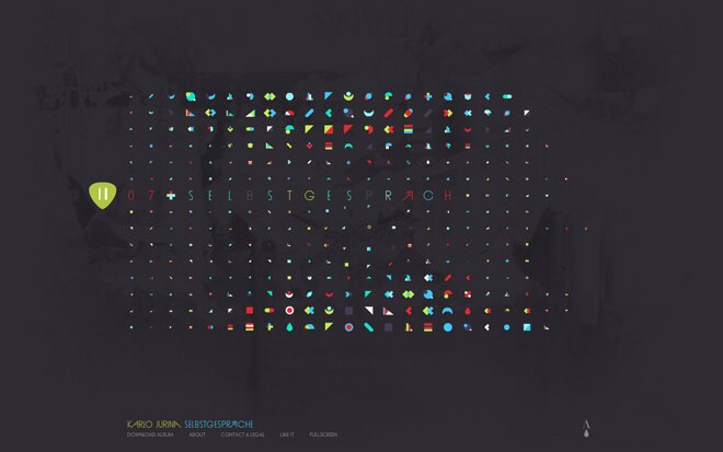 The music can be controled by the horizontal lines. The name of the song gets visuable at a hover above. A plectrum marks the current song. The functions of the player are conscious rudimentally to offer less diversion as possible.