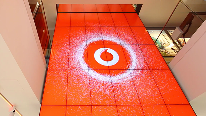 Vodafone opened the first German flagshipstore in Cologne. The innovative shop concept includes a 7m x 3,50m display consisting of 36 displays.